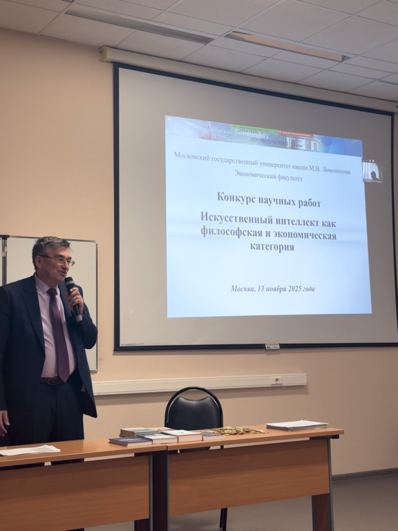 13 ноября 2025 года на экономическом факультете МГУ имени М.В. Ломоносова состоялось награждение победителей и призеров конкурса научных студенческих работ. Конкурс проводится кафедрой философии и методологии экономики с 2014 года. В 2025 году для конкурса была определена следующая тема: "Искусственный интеллект как философская и экономическая категория". В конкурсе приняло участие 135 студентов. После двойного слепого рецензирования были определены победители и призеры, которым были вручены дипломы и подарки: