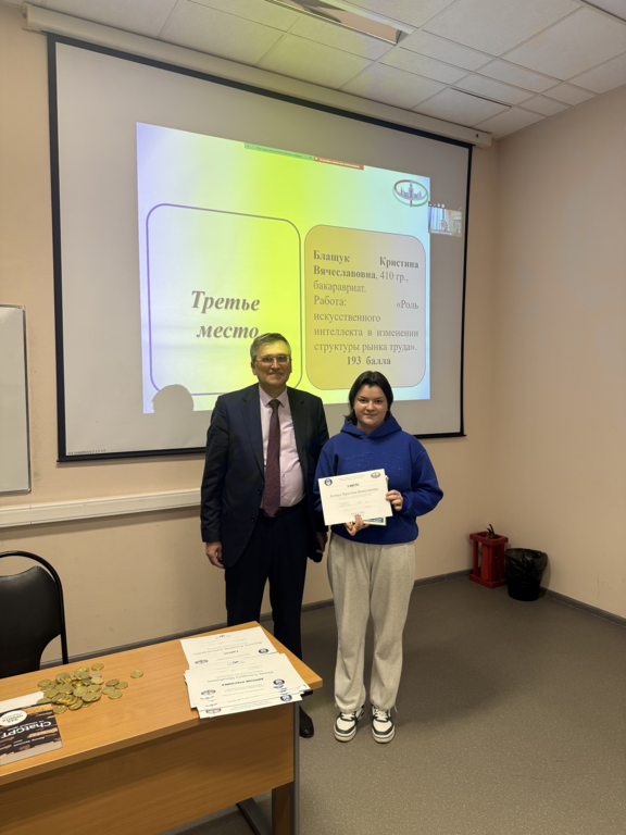 Блащук Кристина Вячеславовна - 410 гр., бакалавриат, название работы: "Роль искусственного интеллекта в изменении структуры рынка труда".