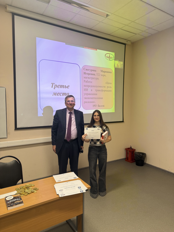 Снегурова Марианна Игоревна - 522 гр., магистратура, название работы: "Цена непредсказуемости: роль ИИ в трансформации управления экономическими рисками".