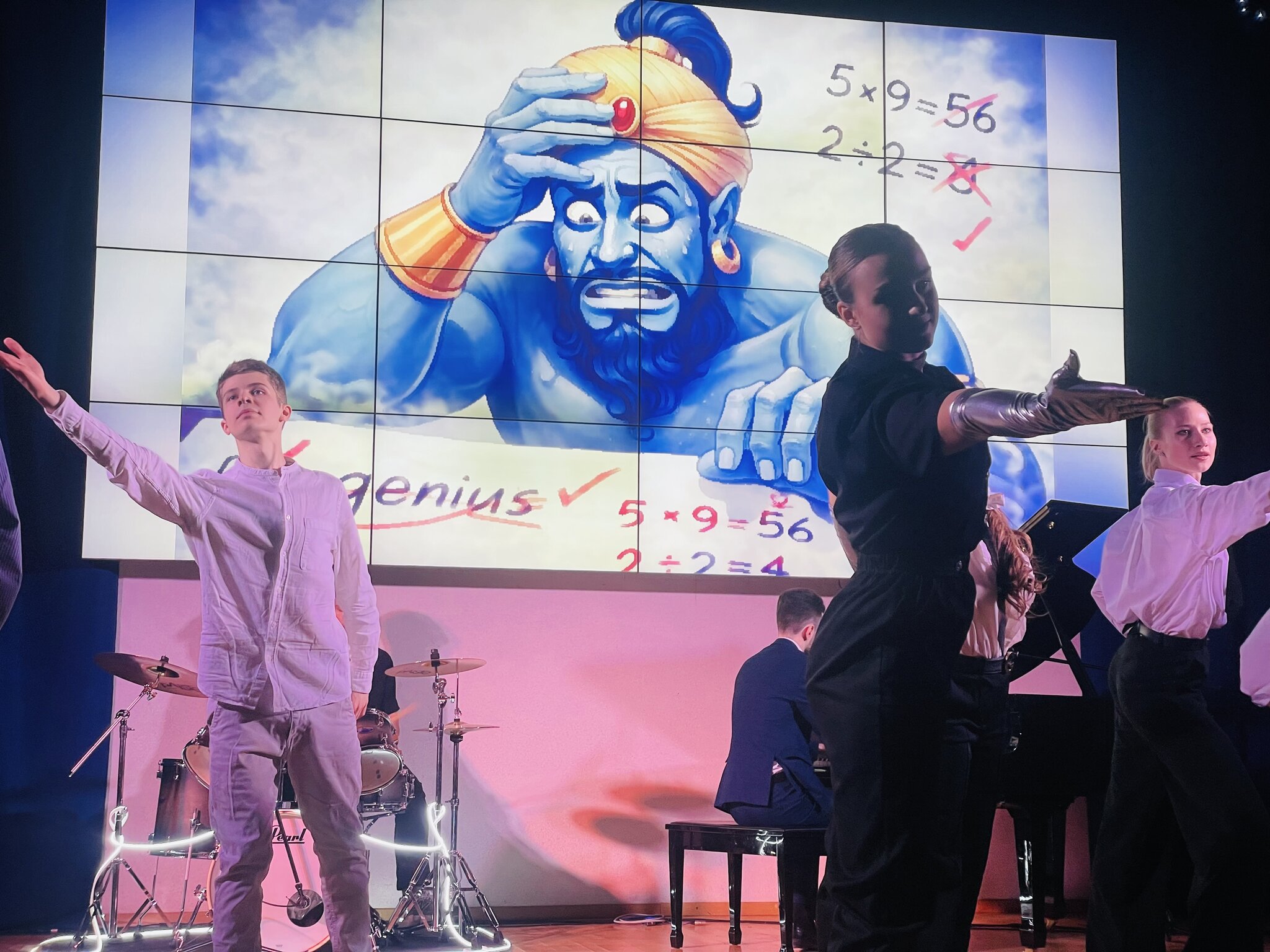С помощью фееричных сольных и ансамблевых номеров, танцевальных и инструментальных композиций студенты рассказали историю "перевоспитания" созданного ими "помощника" ДЖина ПеТра.