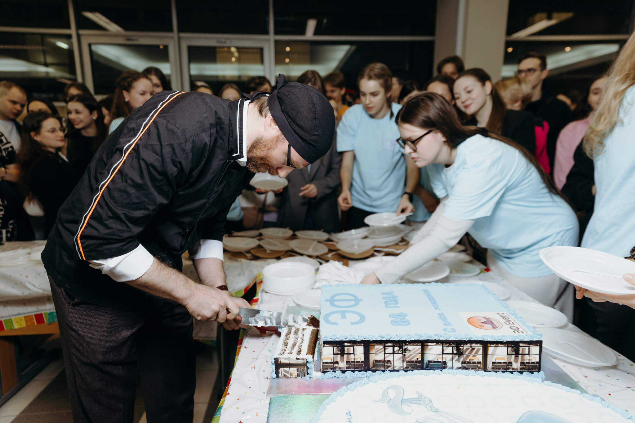 День Эконома закончился праздничным студенческим чаепитием с 20-килограммовым тортом и мандаринами.