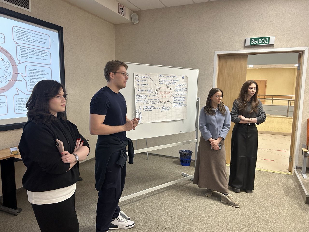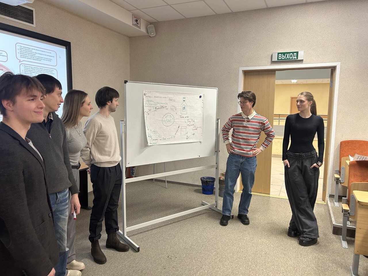 В рамках семинара студенты разбились на команды, каждая из которых по определенному шаблону проектирования устойчивых инноваций подготовила небольшие презентации проектов.