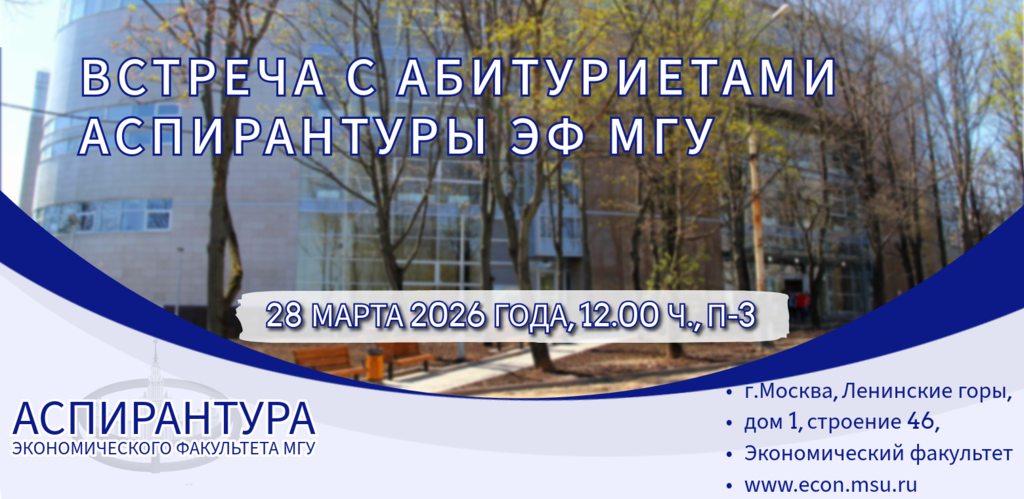 28 марта 2026 года в 12:00 ч, П-3 состоится встреча с абитуриентами аспирантуры ЭФ МГУ!